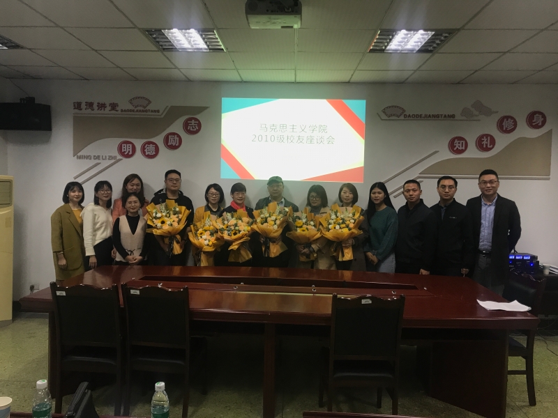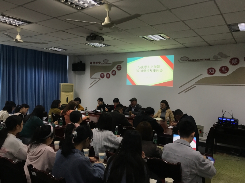 10月8日15:00,2010级思想政治教育专业10余名员工返校在公司会议室参加座谈会。同时参会的有公司经理李才俊、党总支书记刘明明、副经理张莉、公司员工会秘书长李华夏、原2010级辅导员董骞以及部分在校生代表。