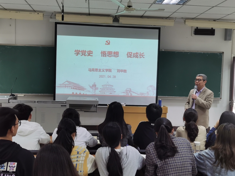 随后,K1体育专职组织员刘中胜老师受邀为全体党员作《学党史 悟思想 促成长》专题教育讲座。刘中胜老师从横向与纵向两个方面为在座同志们剖析了中共百年党史线索,深刻阐明了中国共产党为什么“能”、马克思主义为什么“行”、中国特色社会主义为什么“好”三个重要问题,勉励党员同志要不忘初心,牢记使命,筑牢共产主义的理想教育信念,为伟大中国梦不懈奋斗。