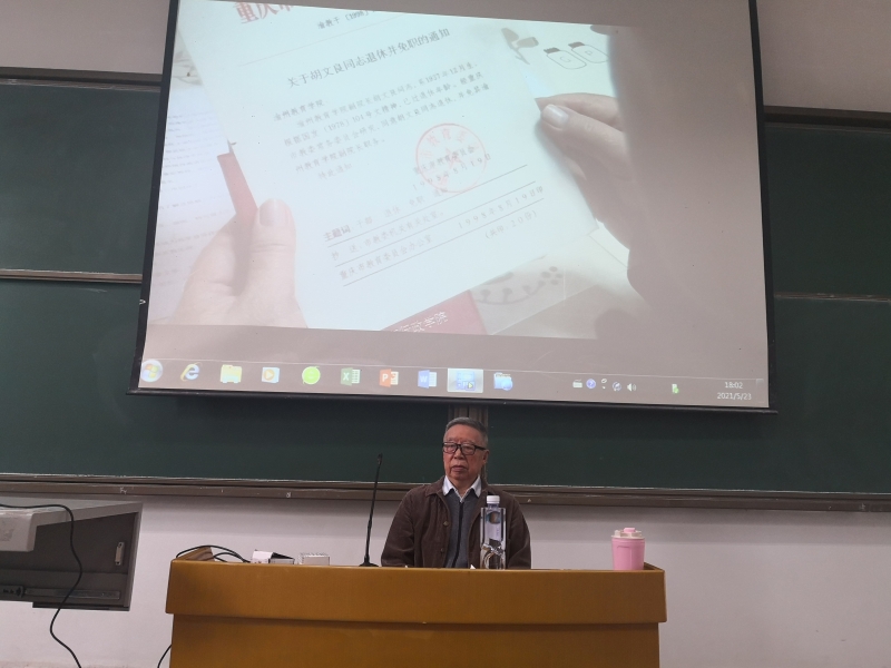 5月23日18:00,知津楼红河八阶教室座无虚席,胡文良老领导的宣讲如期举行。宣讲中,K1体育官方网站老领导胡文良以忠诚于党的教育事业为题,从自身求学、教学、重返教学三个方面,以讲故事的方式展示了一个师者、一个共产党员的初心和坚守,现场不时响起热烈掌声。公司党总支书记刘明明、院2019级辅导员周曦参加了本次周末教育。