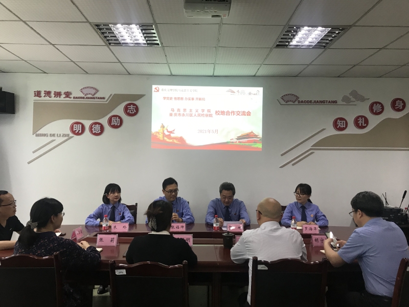 5月27日下午,公司领导和教师代表在知津楼C205会议室与重庆市永川区人民检察院举行了校地合作交流会。永川区人民检察院副检察长贺刚,检察官张福坤、罗海萍、朱玲及公司经理李才俊,党总支书记刘明明,副经理张莉、胡守敏出席了本次会议。