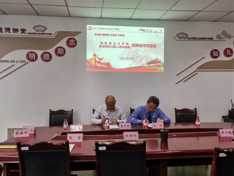在会议上,副检察长贺刚介绍了永川区人民检察院的机构设置、部门工作职责、检察人才队伍建设、检察改革进展和人才需求等基本情况,并表示非常欢迎公司法学师生到永川检察院进行实务锻炼,一方面提升法学师生的职业人意识和专业技能,另一方面通过智力资源的引入助推检察工作改革创新。公司经理李才俊介绍了公司法学专业近年来在专业建设、科学研究、人才培养等方面的进展情况,并强调了校外实践教学和实习见习对法学人才培养的重要意义。李经理指出,强化检校合作,是贯彻全面依法治国战略和实施卓越法律人才教育培养的重要举措,对于促进法学教育与司法实践的紧密结合,实现检校优势互补、相互促进,培养应用型法律人才具有非常重要的作用。公司对此高度重视,将切实增强责任感、使命感,认真落实合作协议。