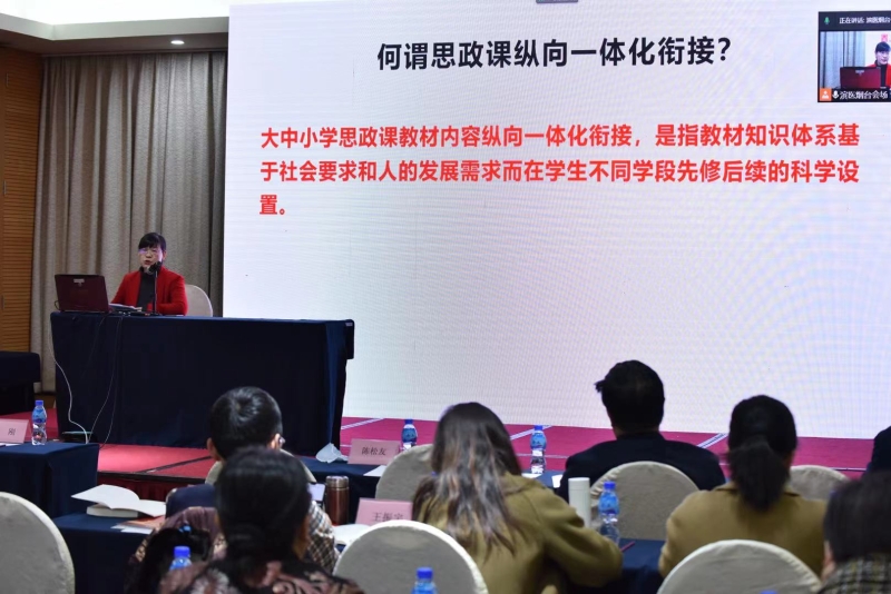 张莉博士在主题报告中基于实证调研与个人访谈,对大中小学思政课纵向一体化衔接作了总体评价,围绕当前大中小学思政课教学内容纵向一体化衔接的主要问题作深度剖析,并提出对策。报告引起了与会者的强烈共鸣、热烈讨论和高度认同,专家学者纷纷表示希望在此方面加强合作与交流,共同促进思政课建设发展,不负国家对思政课教师的殷切期待。
