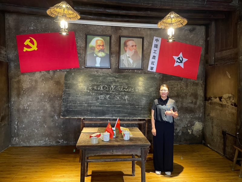 师生一行达到红军街,先后学习了军服、军旗的的演变历程,参观了保留完好的红军街历史建筑,由衷的为中国共产党百年历程发至内心的感动,为生活在如此美好的新时代而感到自豪。在传习所,镇长陈飞宇为师生上了一场生动的“微党课”,刘明明、张苏强、李华夏先后上台分享了学习体会,员工代表现场朗诵了毛泽东的诗词。