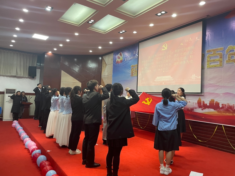 公司青年老师与十组同学通过PPT讲解、朗诵、快板、情景剧表演等形式再现“焦裕禄”“南昌起义”“小岗村的故事”“李大钊”“一张留言条——80年前军民鱼水情”“时代楷模——王红旭”等生动故事,展现了不同时期共产党人的担当和气节,让师生们深受教育和感动。在最后环节,本学期新发展党员代表进行了入党宣誓,在场所有党员一起重温入党誓词。
