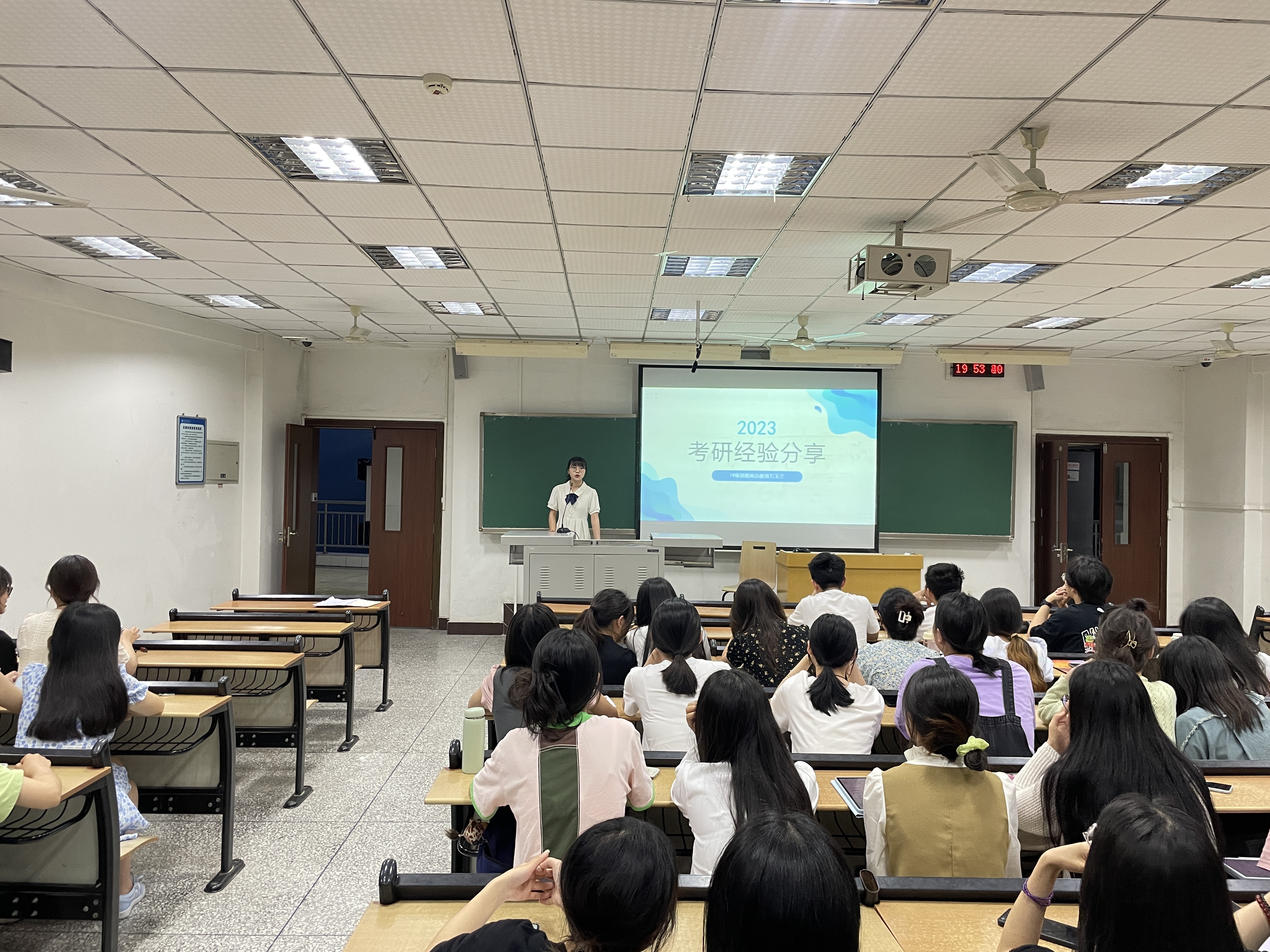 为更好的帮助2020级员工尽早进行考研规划,有效开展课程复习。2023年5月14日晚6:50在知津楼D205开展考研经验分享交流会,学工办主任李华夏、2020级思想政治教育专业全体员工参会,万玉兰、余亨利、封亚欣三位2019级同学做了备考经验分享。