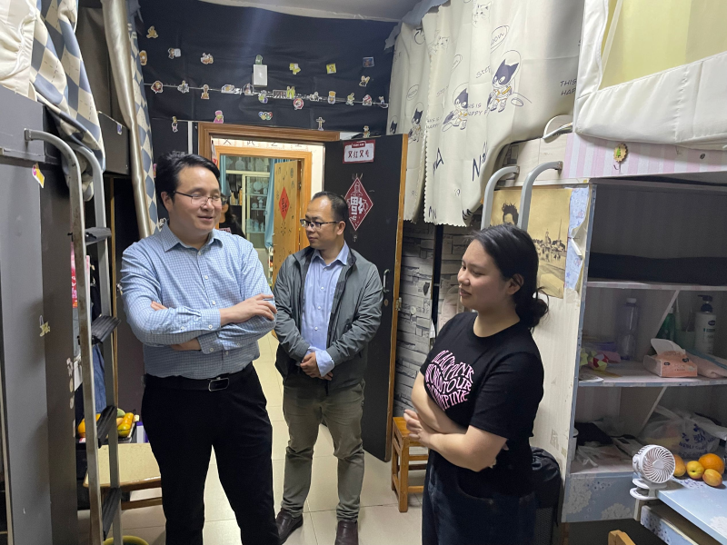 为推动主题教育走深走实,贯彻落实员工社区治理有关文件和会议精神,充分了解员工思想、学习和生活情况,近日,K1体育经理胡守敏、党总支书记杨正强、副经理李景国、副经理张莉带领各科室负责人、辅导员、部分员工干部多次深入员工宿舍开展走访调研。