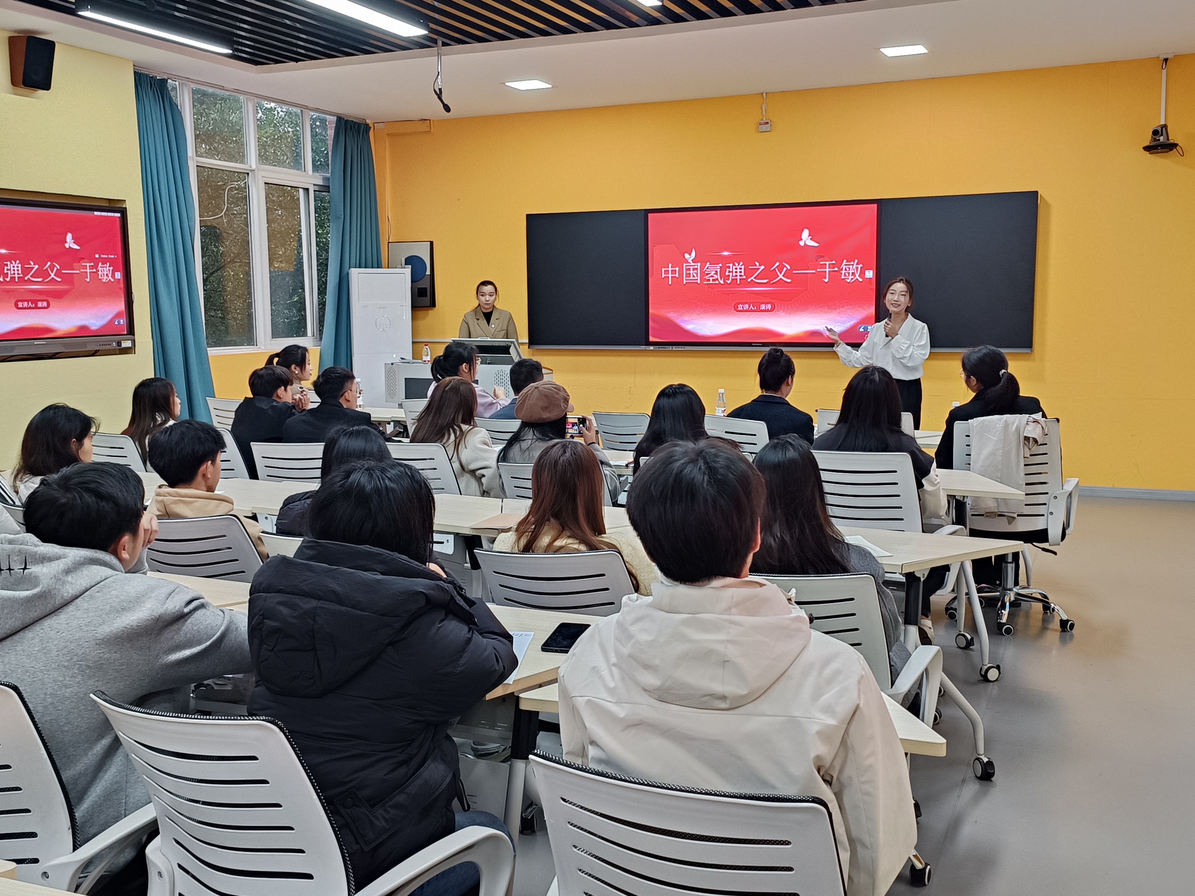 本次宣讲由宣讲团成员李思雨主持,成员陈蕾宇、韩文俊、康涛、马茜蕾、吴锦芳、张胜楠、范梦萍以动人的故事、真挚的情感结合丰富的视频、图片等资料向同学们讲述了“西风嘴子伏击战”“辽沈战役”“中国氢弹之父于敏”“井冈山精神”“人生如马掌铁 磨灭方休”“载人航天精神”“喋血陈瑶湖”七个令人记忆深刻、感慨万千的党史故事,激励同学们坚定理想信念,传承红色基因,整场宣讲生动感人,赢得了在场老师和员工的阵阵掌声。