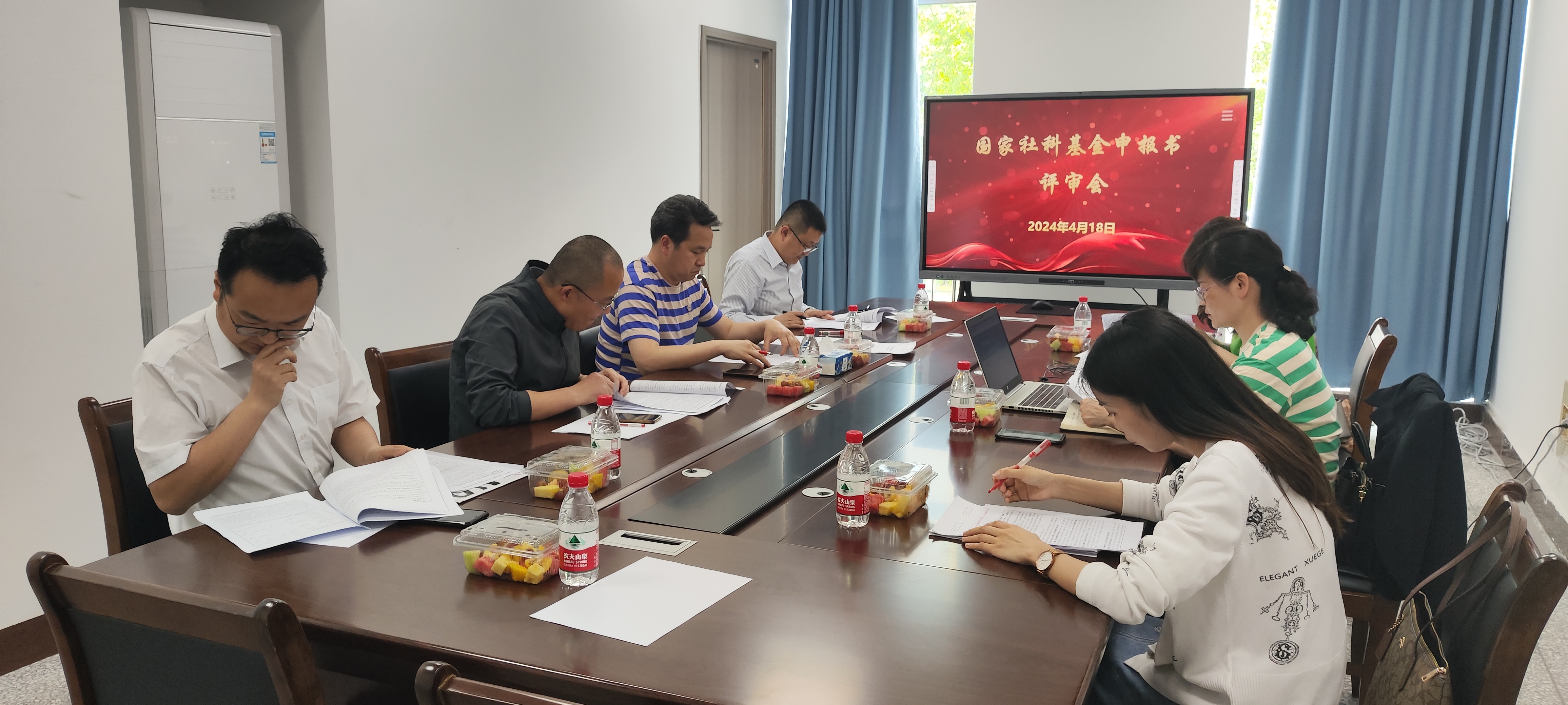 4月18日下午,K1体育2024年度国家社科基金申报书评审会在知津楼B210会议室召开。公司社科处副处长徐泉森,K1体育经理胡守敏、副经理张莉、副教授文华、副教授曾豪及申报教师参加了评审会。张莉主持会议。