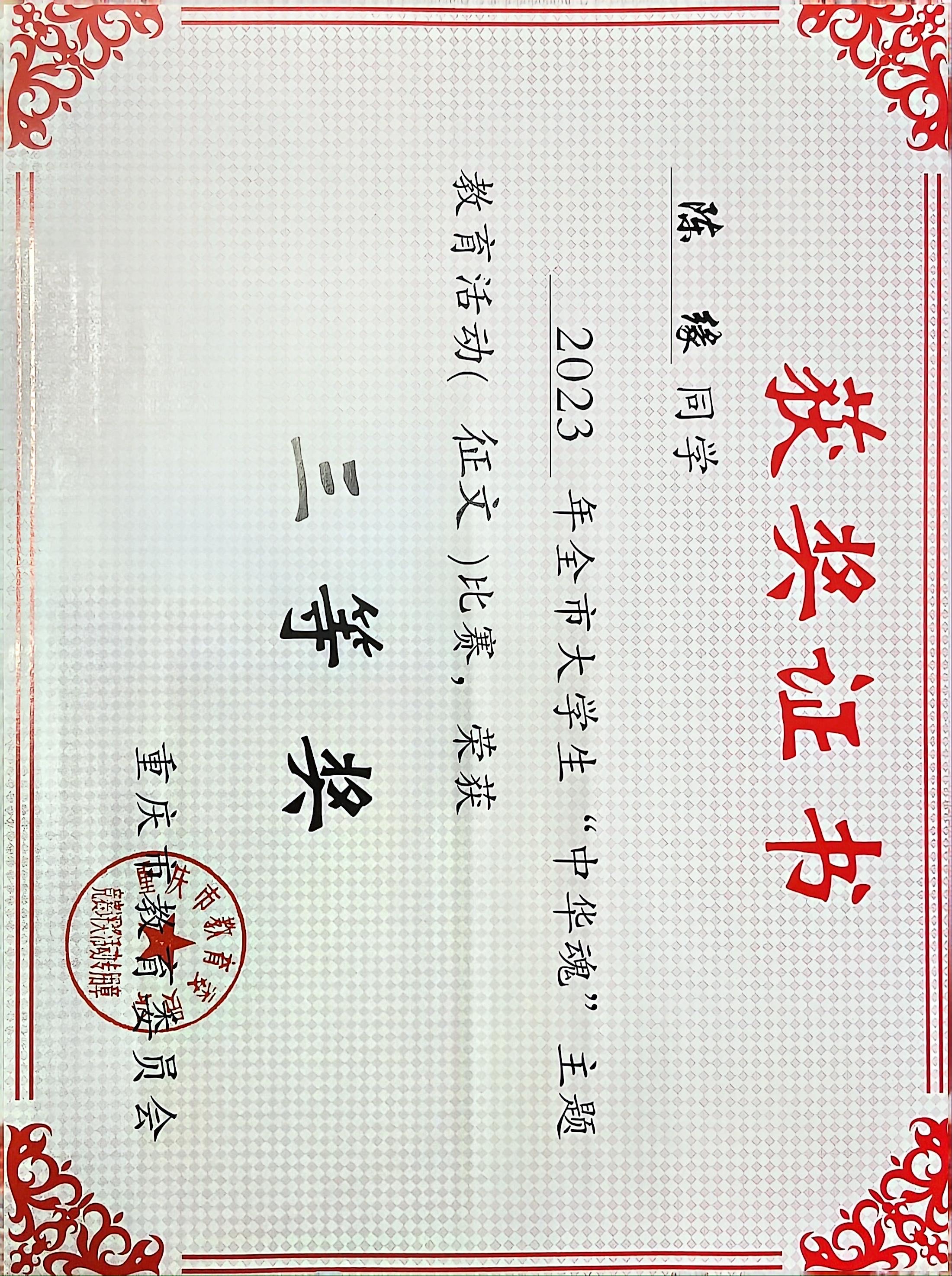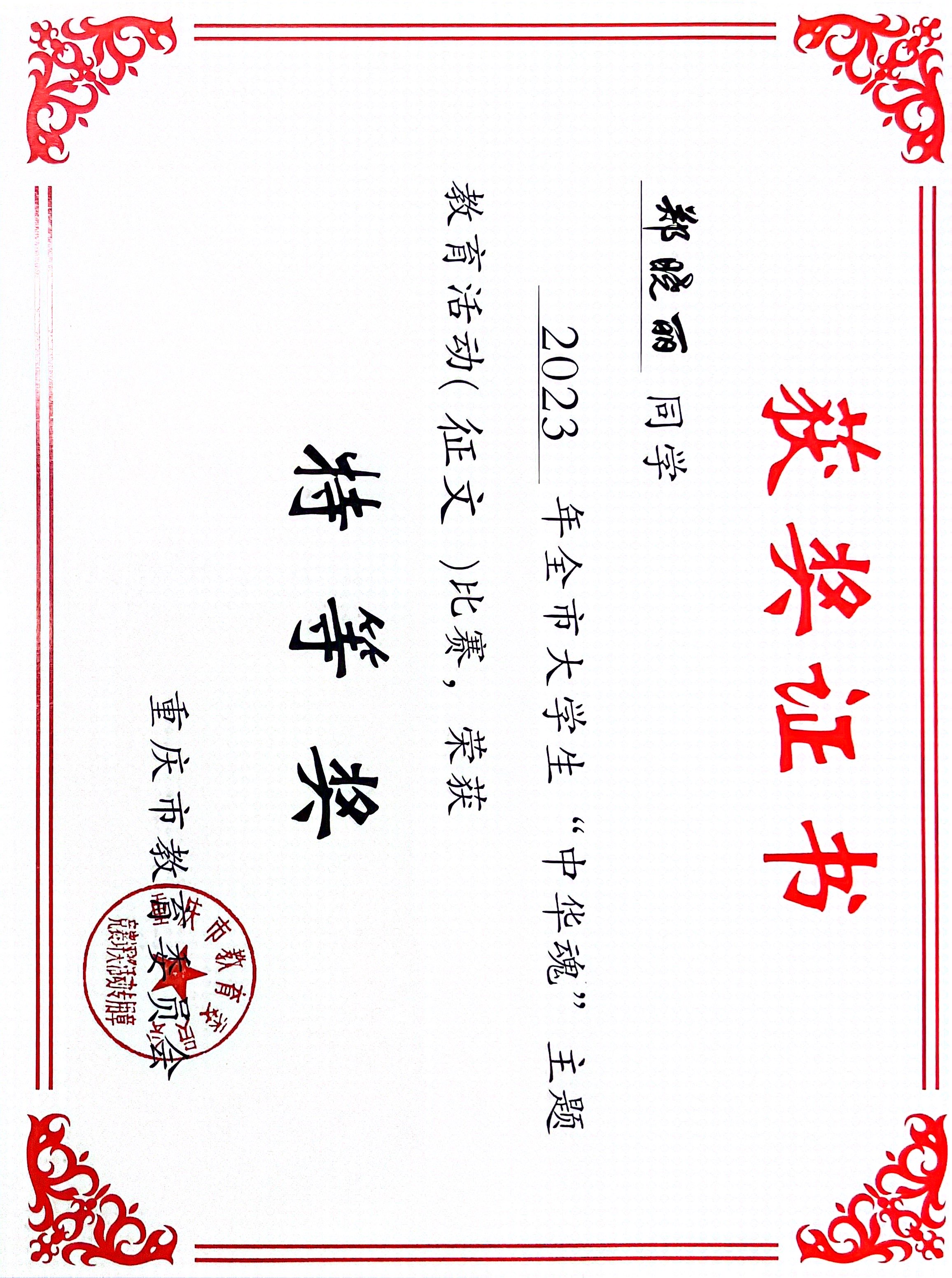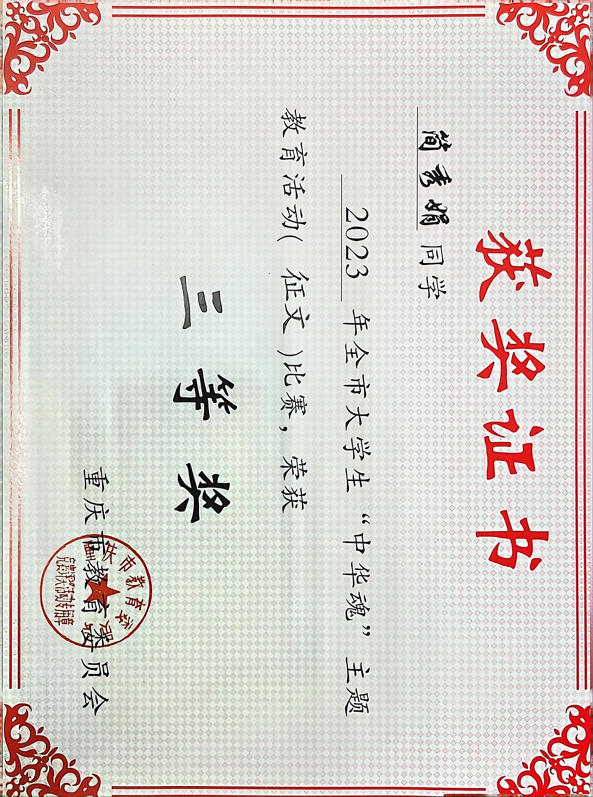 近日,重庆市教育委员会组织开展的老员工“中华魂”主题教育活动比赛结果揭晓,K1体育组织师生积极参与,并获佳绩。其中郑晓丽同学获得全市老员工“中华魂”主题教育活动(征文)比赛特等奖,简秀娟、刘洮希、陈缘三位同学获得三等奖。李华夏、伍沈平两位老师获得全市老员工“中华魂”主题教育读书活动“优秀辅导员”荣誉称号。