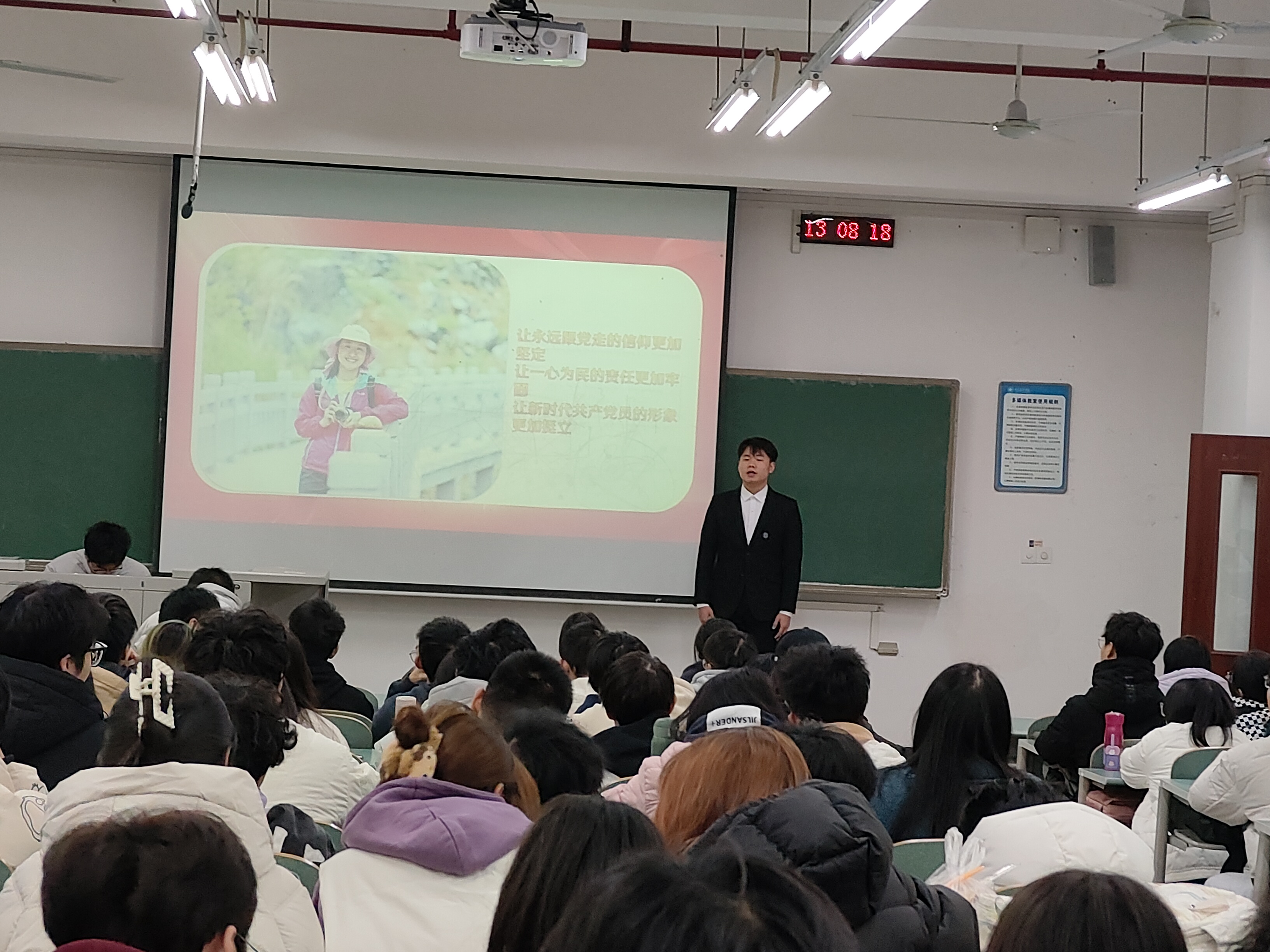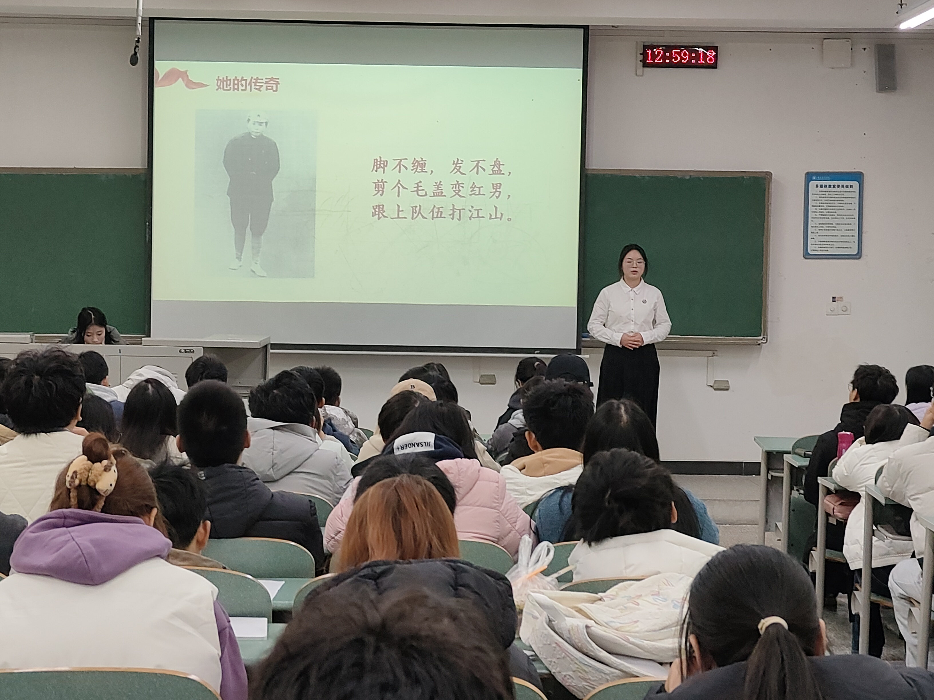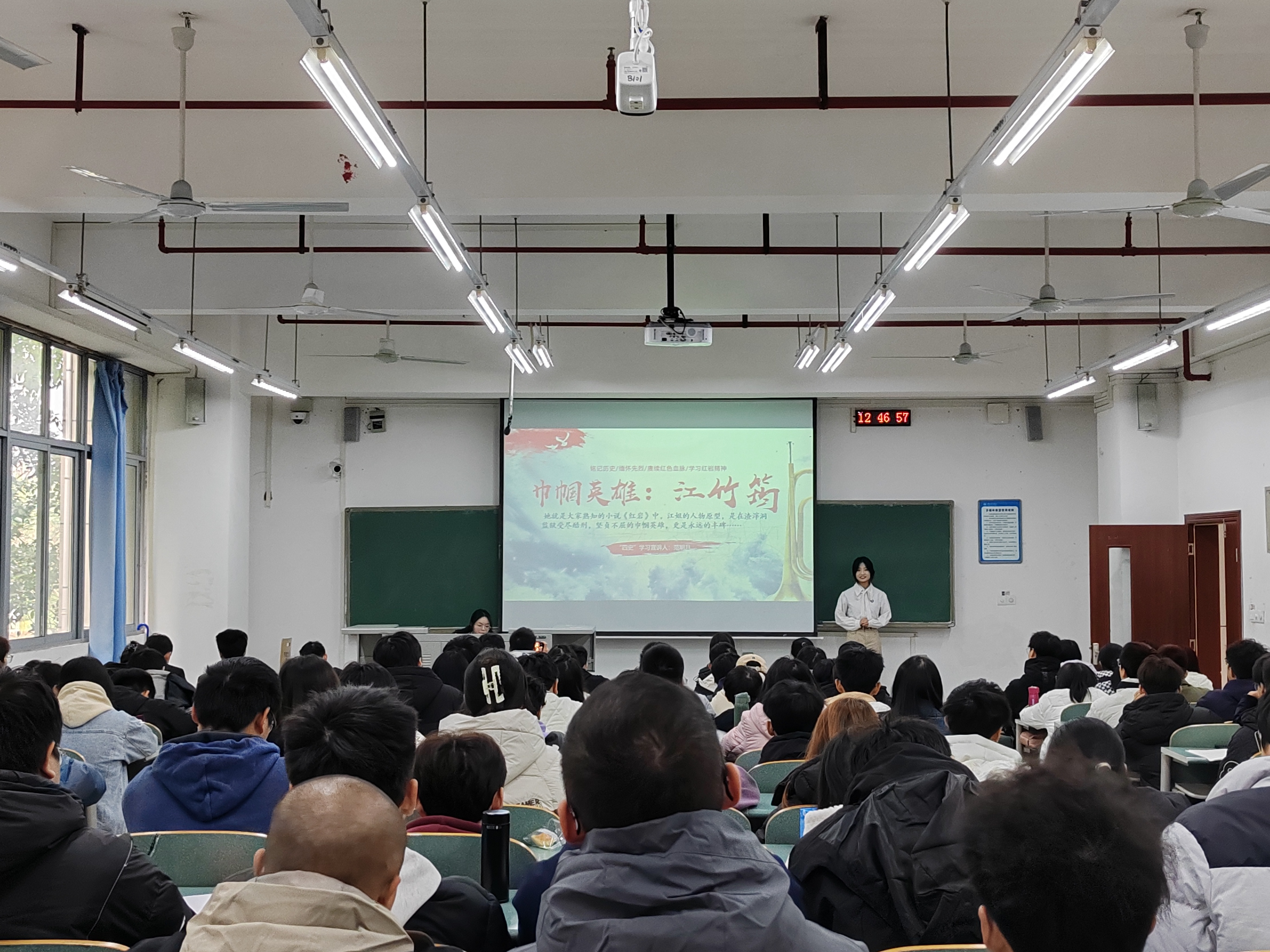 本次宣讲由宣讲团成员吴豪主持,成员王淮艺、程席娟、范明月、林雨桐、阳欣妤、刘鉴锋、蒲美玲先后上台为同学们讲述了《英雄父与子·此身长报国》《用生命谱写报国人生——黄大年》《巾帼英雄江竹筠》等党史故事。宣讲团成员以用感人的事迹、真挚的情感、铿锵的话语展现了中国共产党人的崇高品格和时代楷模的优良风范,引发了同学们的强烈共鸣。
