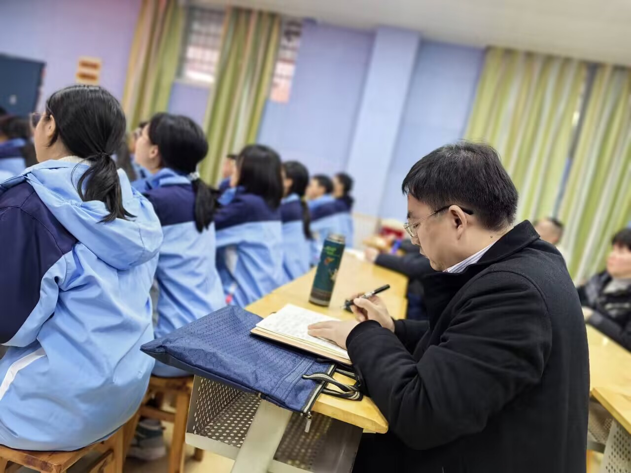 在课堂观摩环节,集体观摩学习了2024年秋季实习教师教学实践展示课。首先观摩了初二年级《关心国家发展》,通过自豪中国、砥砺中国、自信中国三个篇章引导员工关心国家发展,勇于担当作为。随后,观摩了初三年级《如何维护国家安全》,通过破译安全数字为引入,采用议题式教学就解密国家安全、掌握维护国家安全的方法两个议题与员工进行探讨,引导员工增强国家安全意识,自觉维护国家安全。