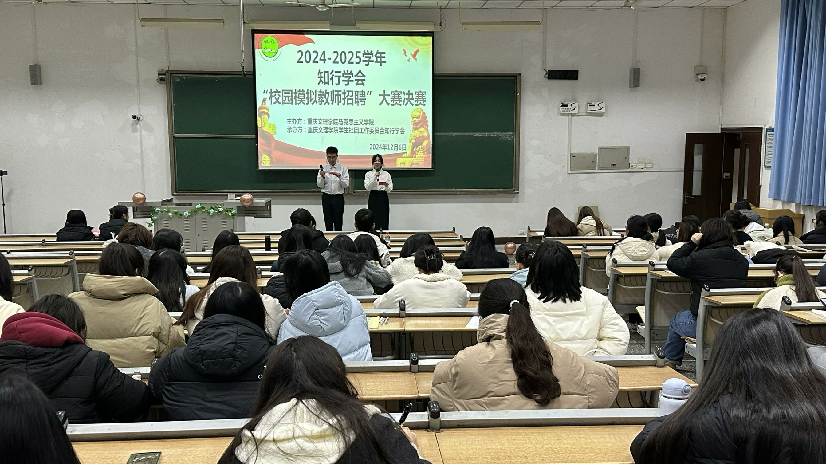 为提升老员工的就业竞争力和招聘技巧,帮助员工了解招聘流程、熟悉求职技巧、提升综合素质,2024年12月6日晚,K1体育知行学会在红河A区知津楼八阶教室开展了“校园模拟教师招聘”比赛决赛。向蓉、李小斌两位老师担任评委,各公司员工共100余人观摩了比赛。