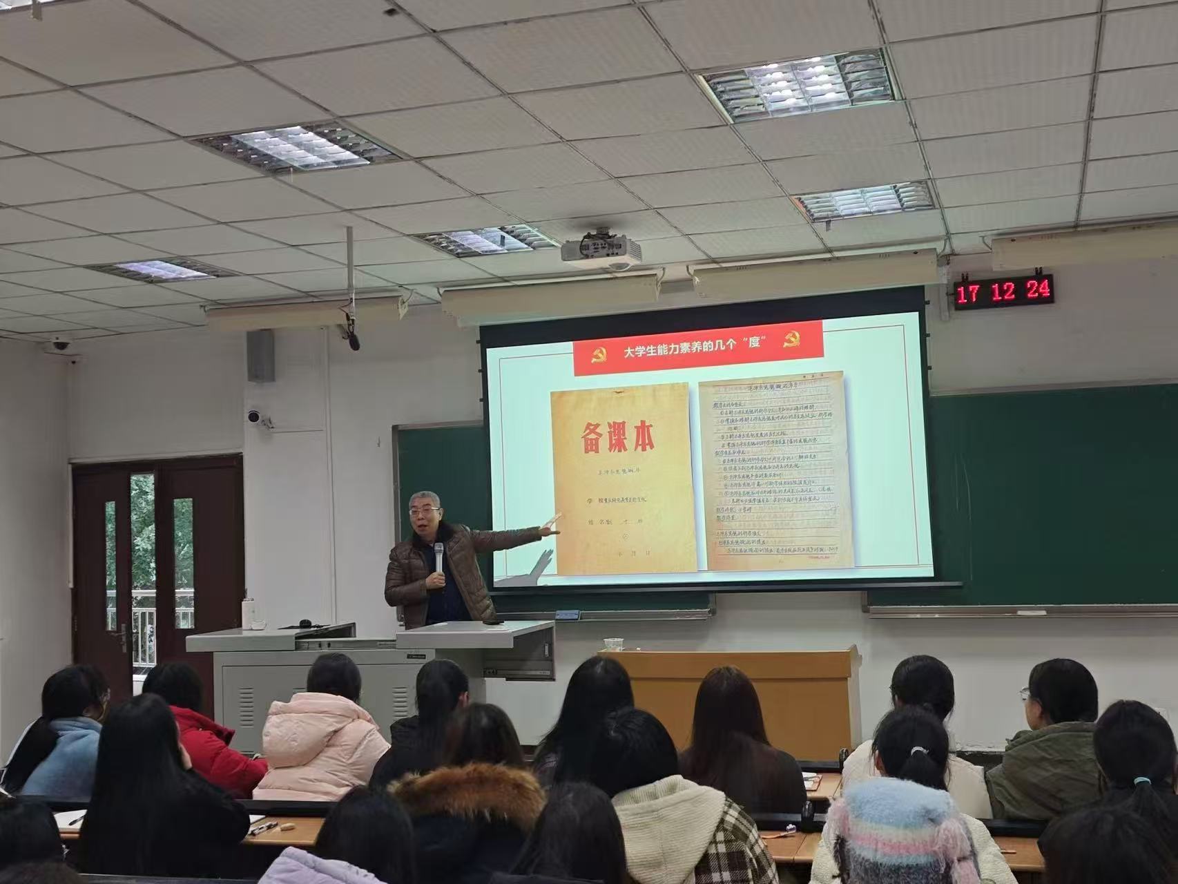 刘中胜以《老员工能力素养的几个“度”》为题,从忠诚度、感恩度、态度等十三个方面,运用幽默风趣的语言,将深刻的理论知识与生动的实际案例巧妙融合,形象生动、通俗易懂,引导同学们着力提升自身素质和能力。
