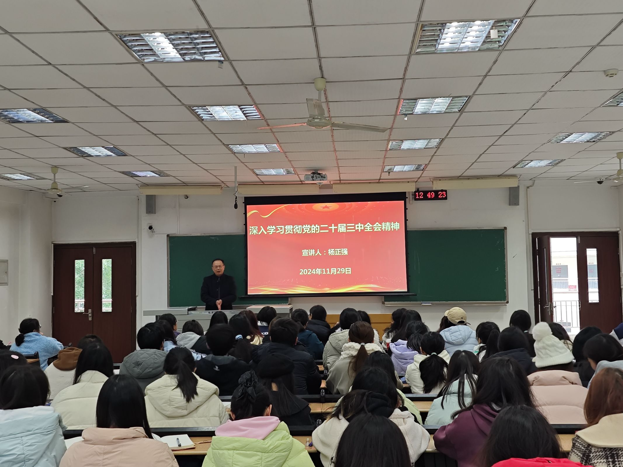 杨正强以《深入学习贯彻党的二十届三中全会精神》为题,带领同学们首先回顾了改革开放以来党的历届三中全会主题,随后从“数”说党的二十届三中全会精神、全面准确理解《决定》提出的进一步全面深化改革重大举措、全力以赴抓好全会精神贯彻落实等方面进行了深入讲解,指出青年老员工要在坚定信念、厚德博学、把握大局、自我教育、心态阳光、调查研究、实践创新等方面下大功夫。
